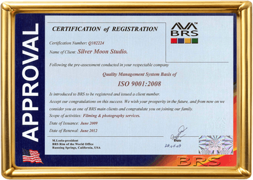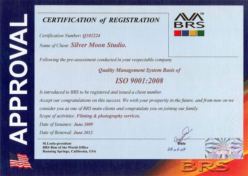 ما در استودیو ماه نقره ای ، هنر سینما را با نظم سازمانی ترکیب کردهایم.گواهینامه های استاندارد مدیریت کیفیت و ممیزی داخلی از سوی سازمان بین المللی BRS نیز خیالتان را از بابت کیفیت نهایی راحت می نماید.
